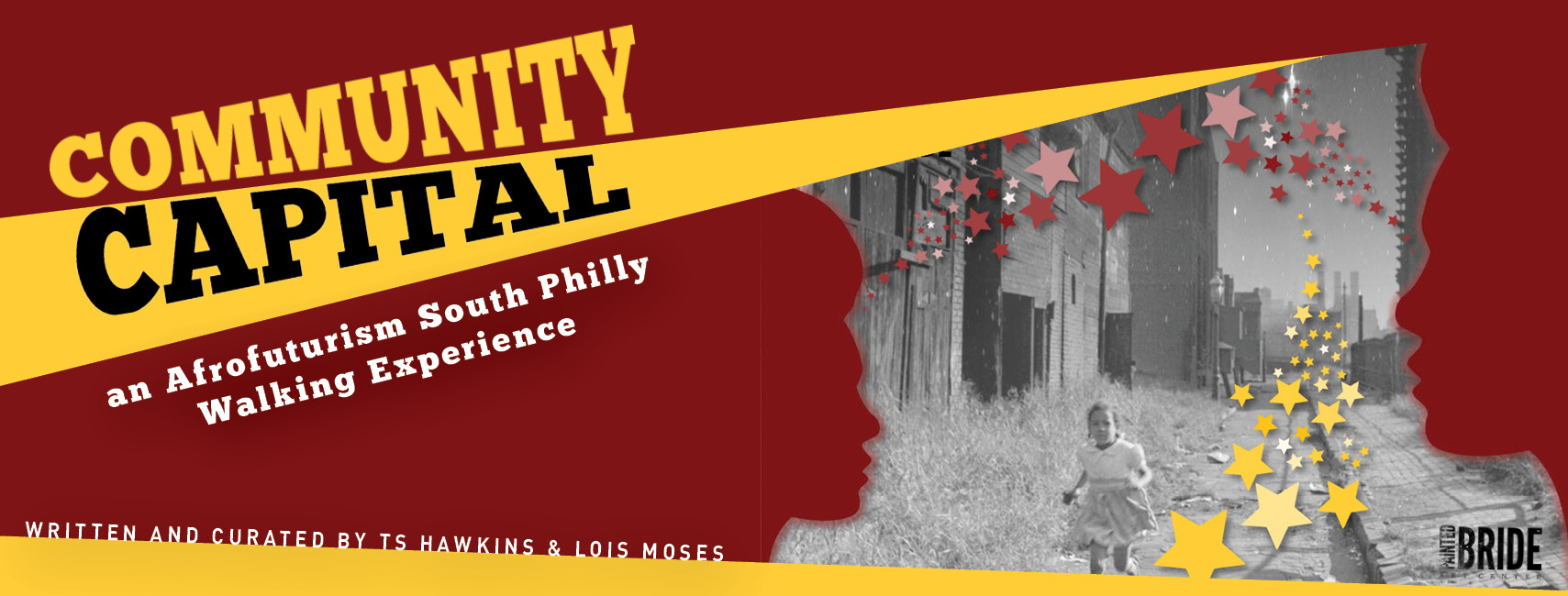We speak ourselves into existence. But, what happens when others of the world silence your tones to cacophony their worth? Community Capital: an Afrofuturism South Philly Walking Experience, curated and written by TS Hawkins & Lois Moses, illuminates an intersectional poetic expedition of sound and unearthing through the streets of South Philadelphia. Letting ancestors guide permeable possibilities, this walking tour opens multiple dimensions of storytelling that ignite the expansion of mind, body, and spirit! Journeying fixed and beyond, participants will have the opportunity to connect with intergenerational voices searching for an equitable community one neighborhood at a time!
